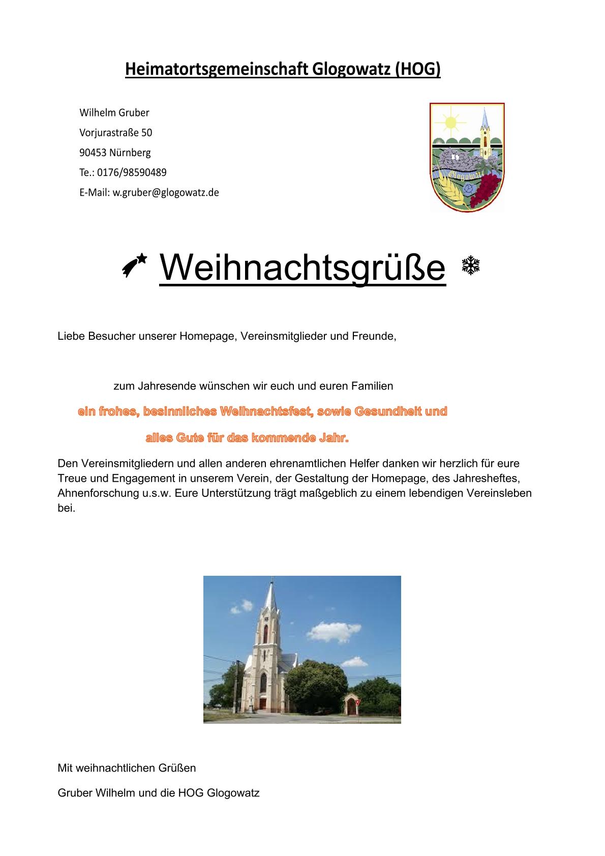 Der Vorstand der Heimatsortsgemeinschaft Glogowatz lädt am 14 Juni 2025 sehr herzlich zur Wallfahrt nach